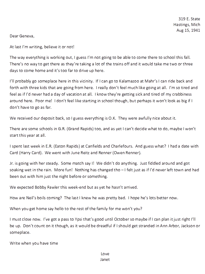 August 15, 1941, Janet to Geneva