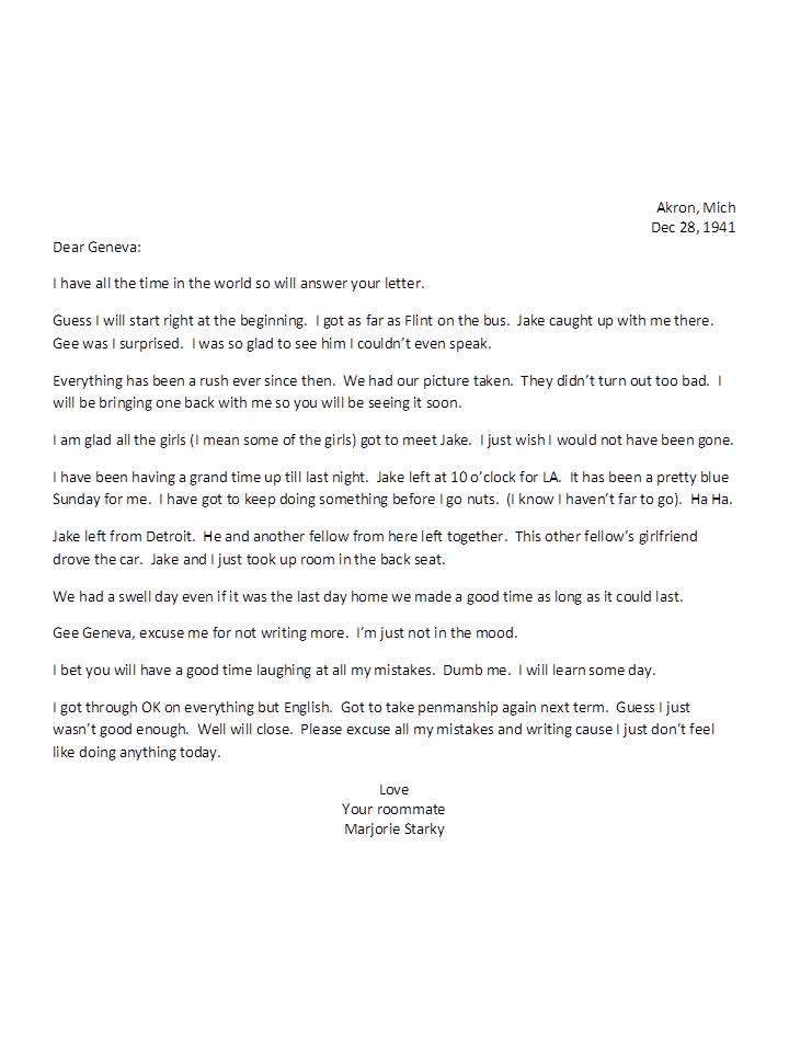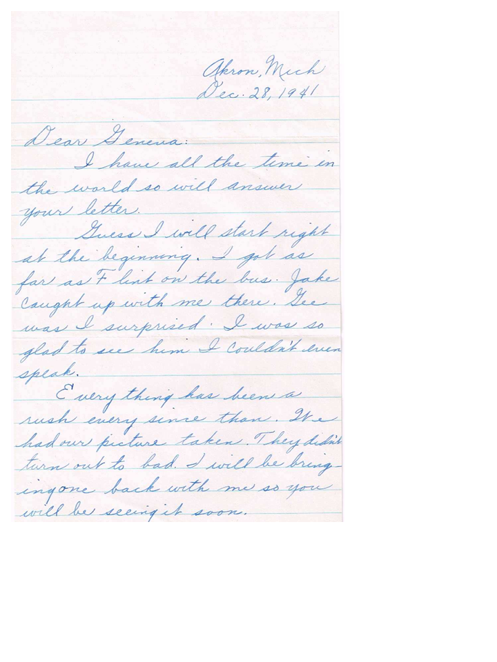 December 28, 1941, Marjorie to Geneva