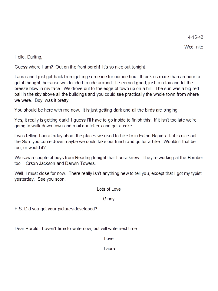 April 15, 1942, Geneva to Harold
