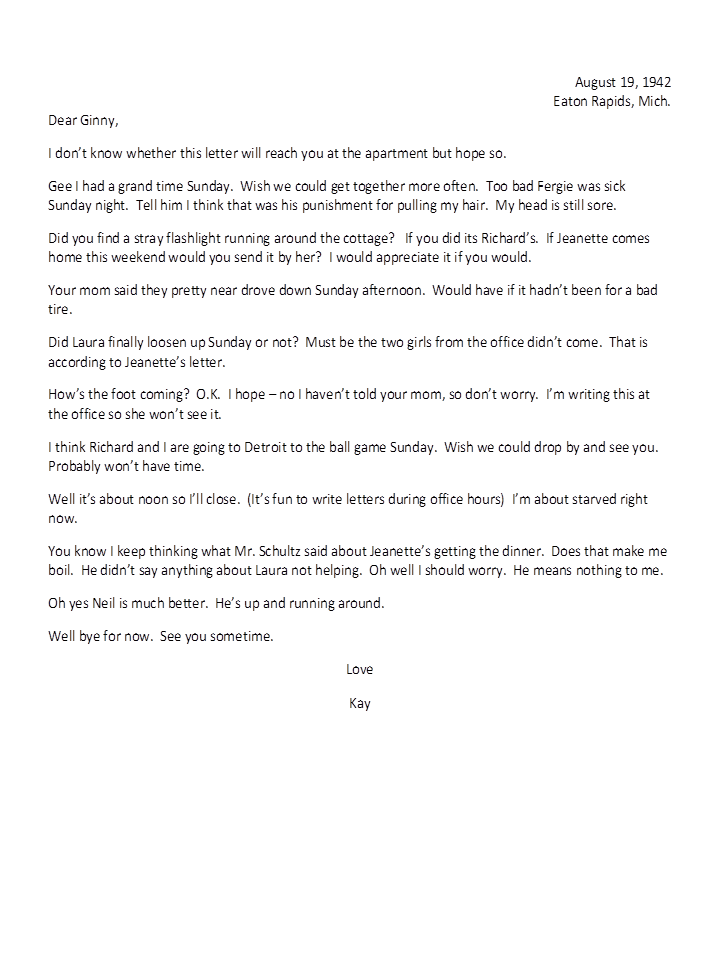 August 19, 1942, Kay to Geneva
