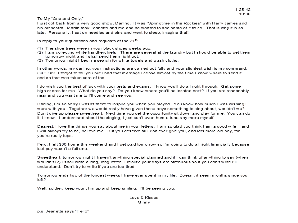 January 25, 1942, Geneva to Harold