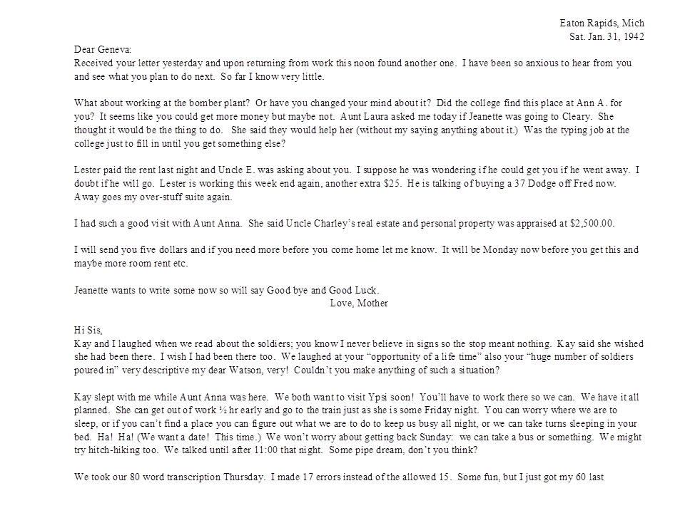 January 31, 1942, Naomi to Geneva