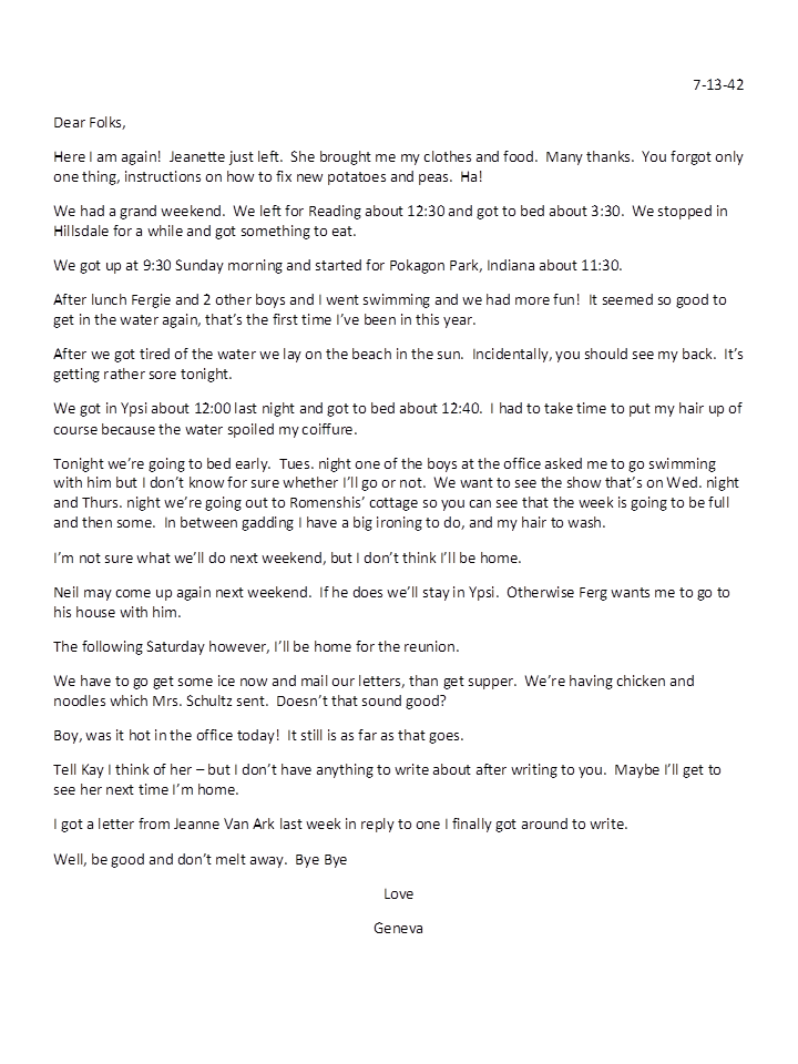 July 13, 1942, Geneva to Parents