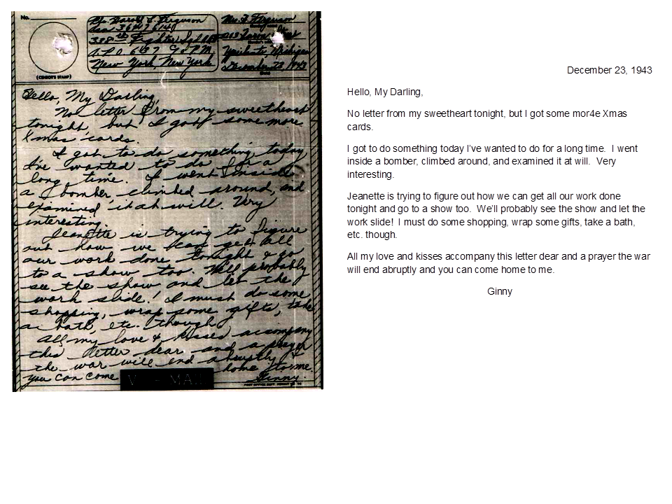 December 23, 1943, Geneva to Harold