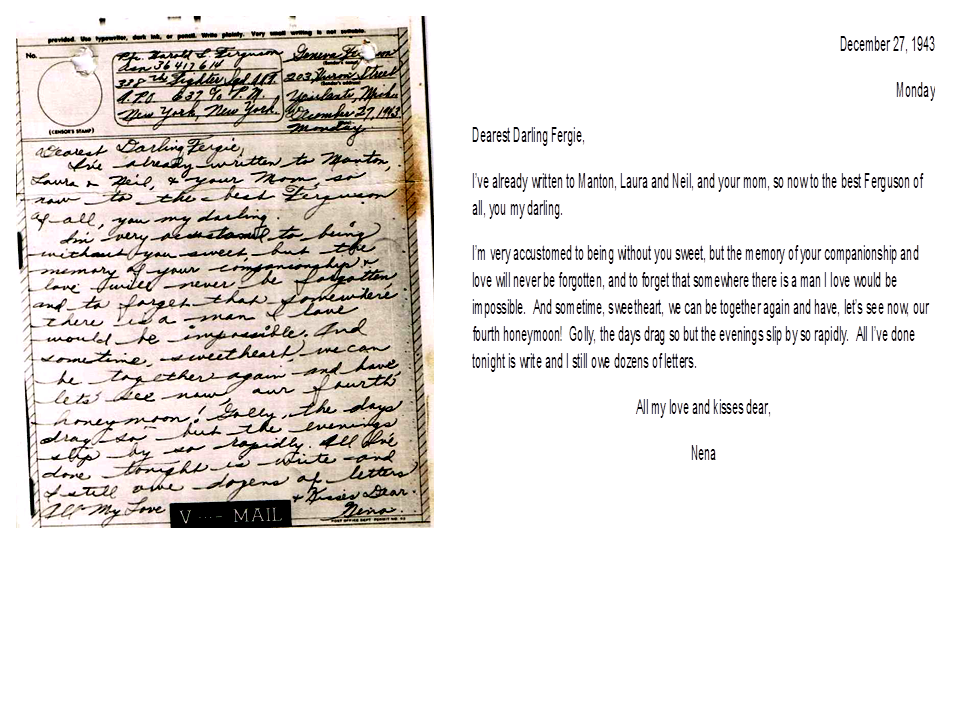 December 27, 1943, Geneva to Harold