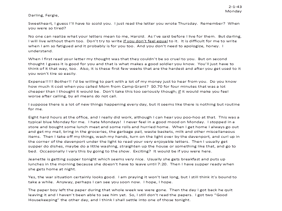 February 1, 1943, Geneva to Harold