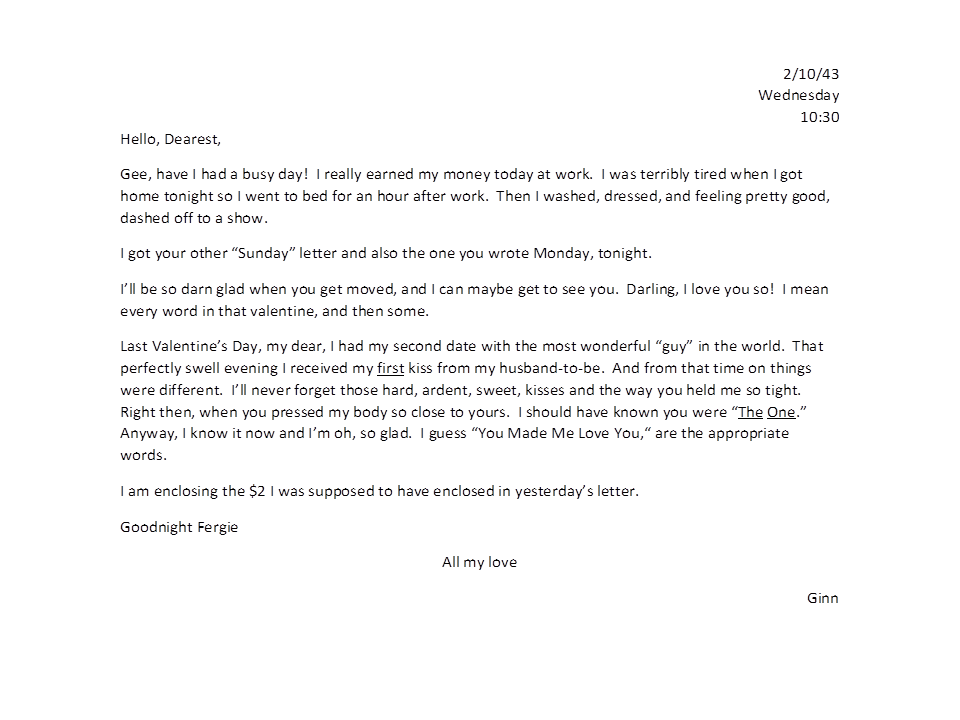 February 10, 1943, Geneva to Harold