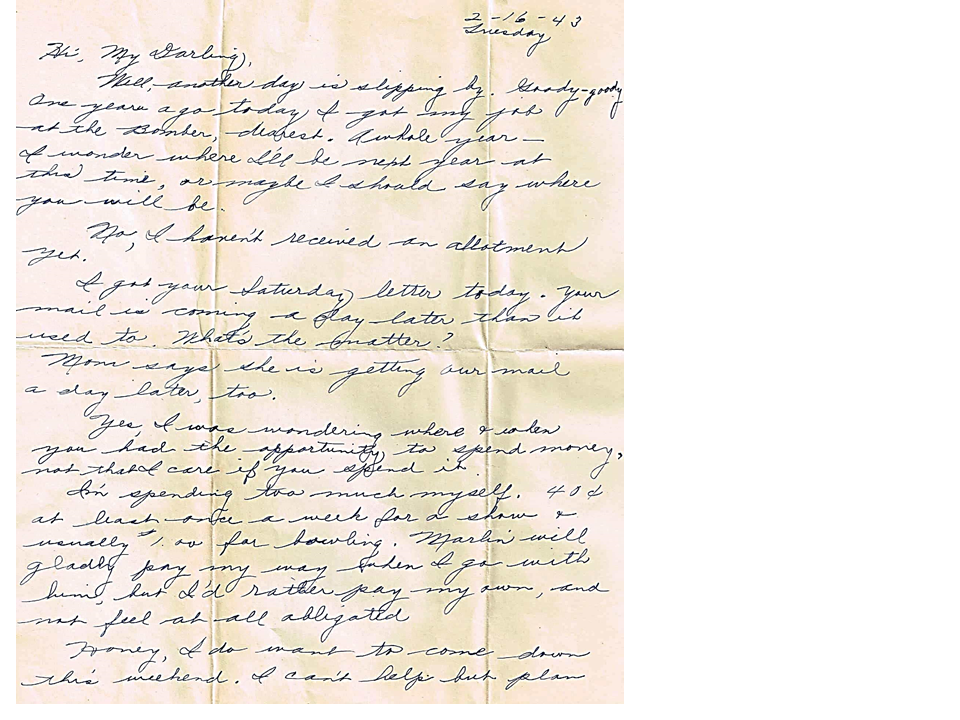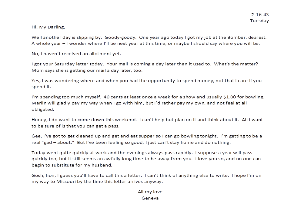 February 16, 1943, Geneva to Harold