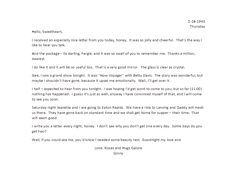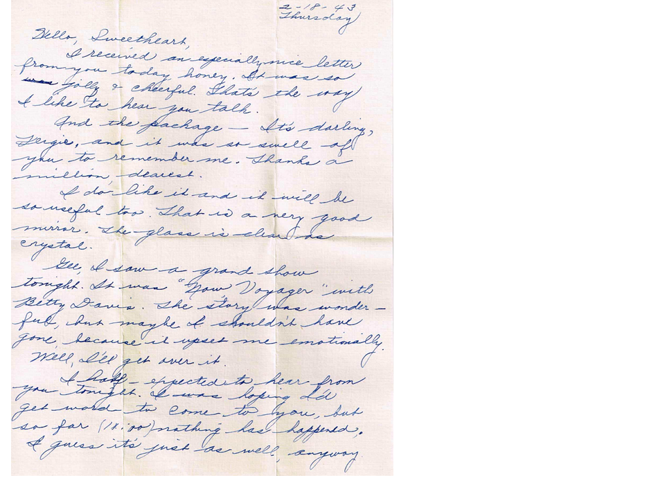 February 18, 1943, Geneva to Harold