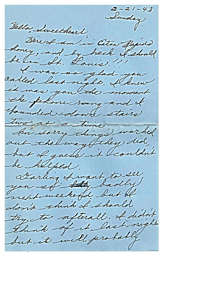 February 21, 1943, Geneva to Harold