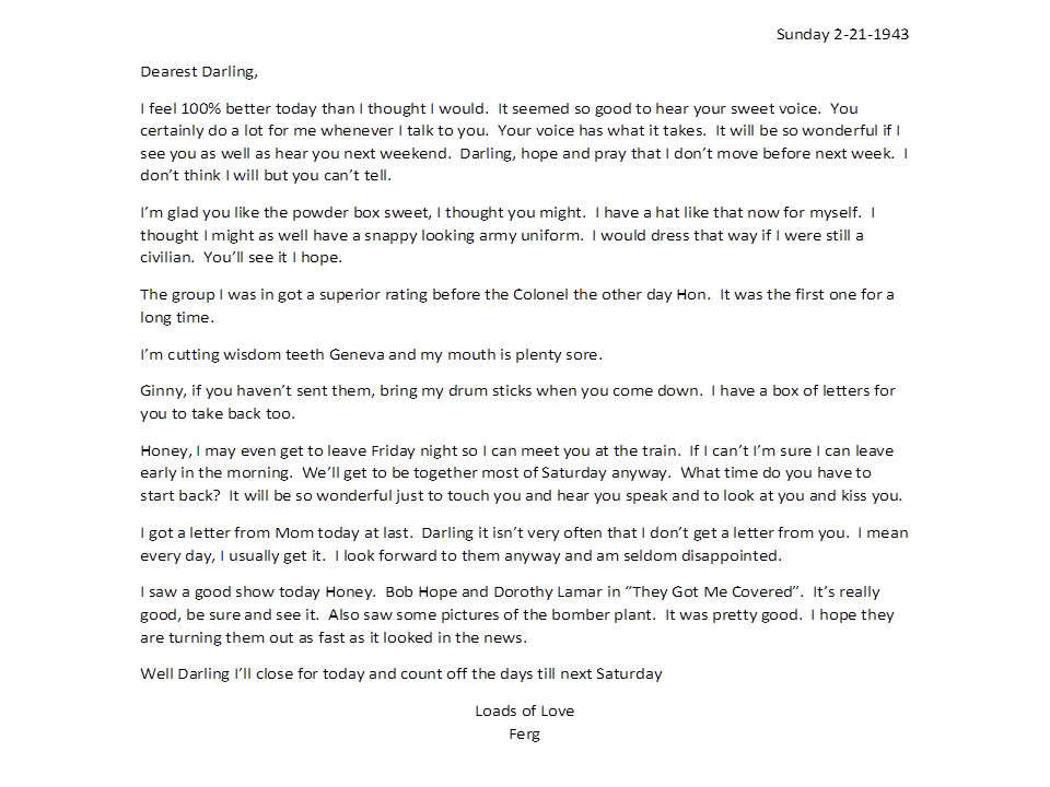 February 21, 1943, Harold to Geneva