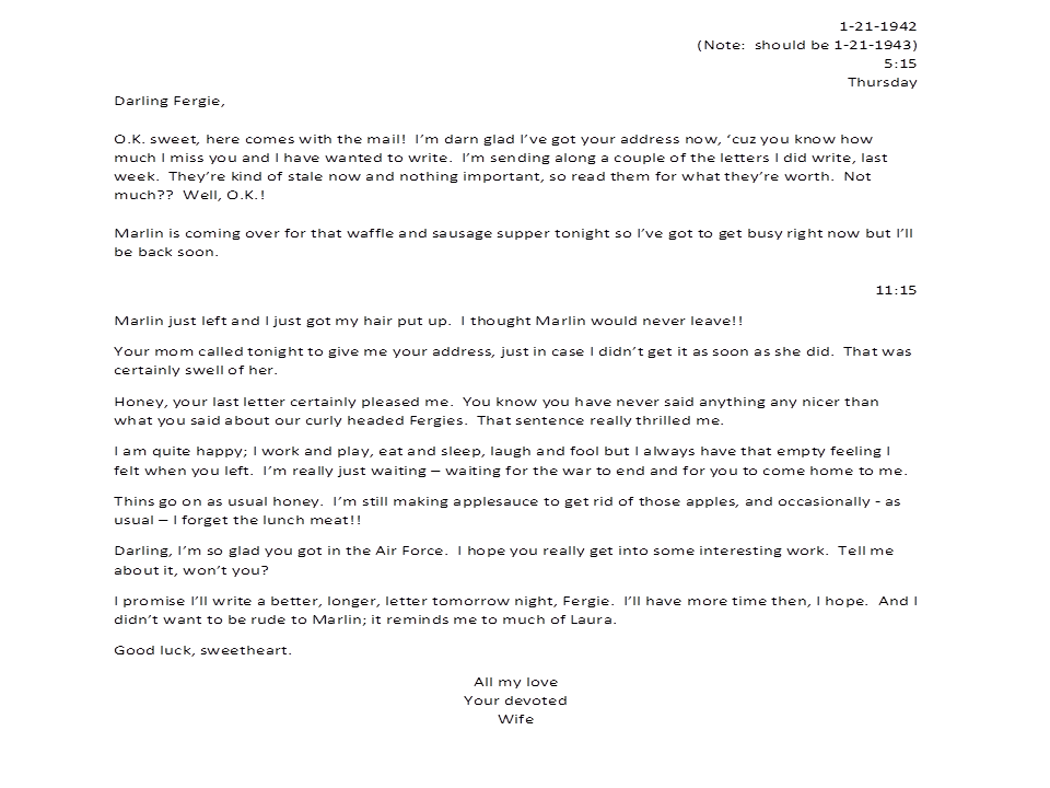 January 21, 1943, Geneva to Harold
