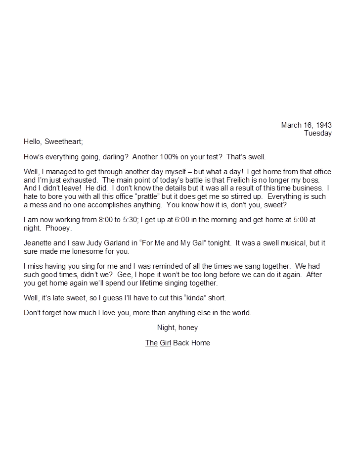 March 16, 1943, Geneva to Harold