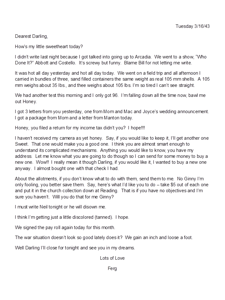 March 16, 1943, Harold to Geneva