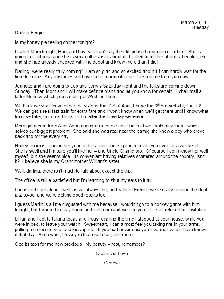 March 23, 1943, Geneva to Harold