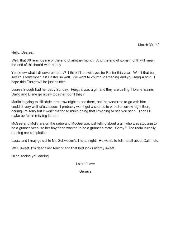 March 30, 1943, Geneva to Harold