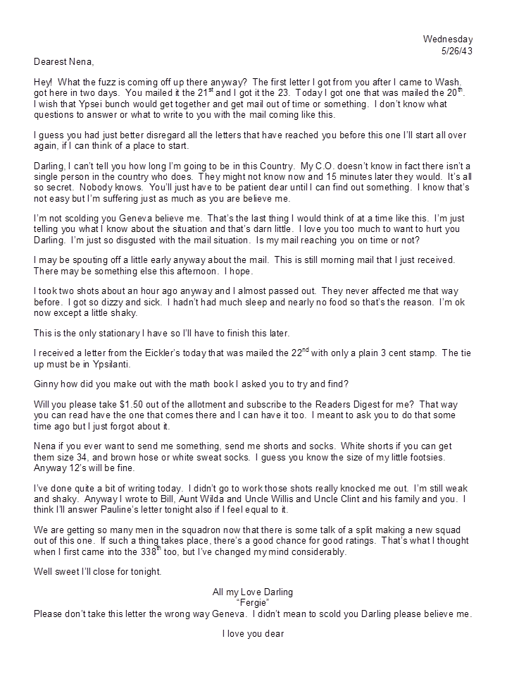 May 26, 1943, Harold to Geneva