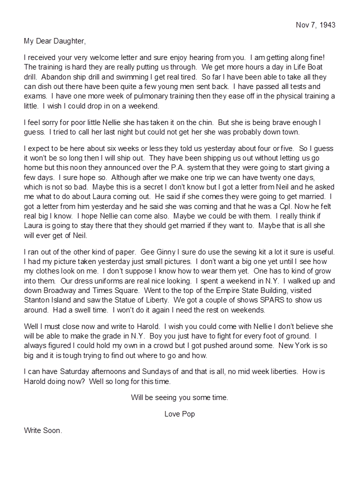 November 7, 1943, Paul to Geneva