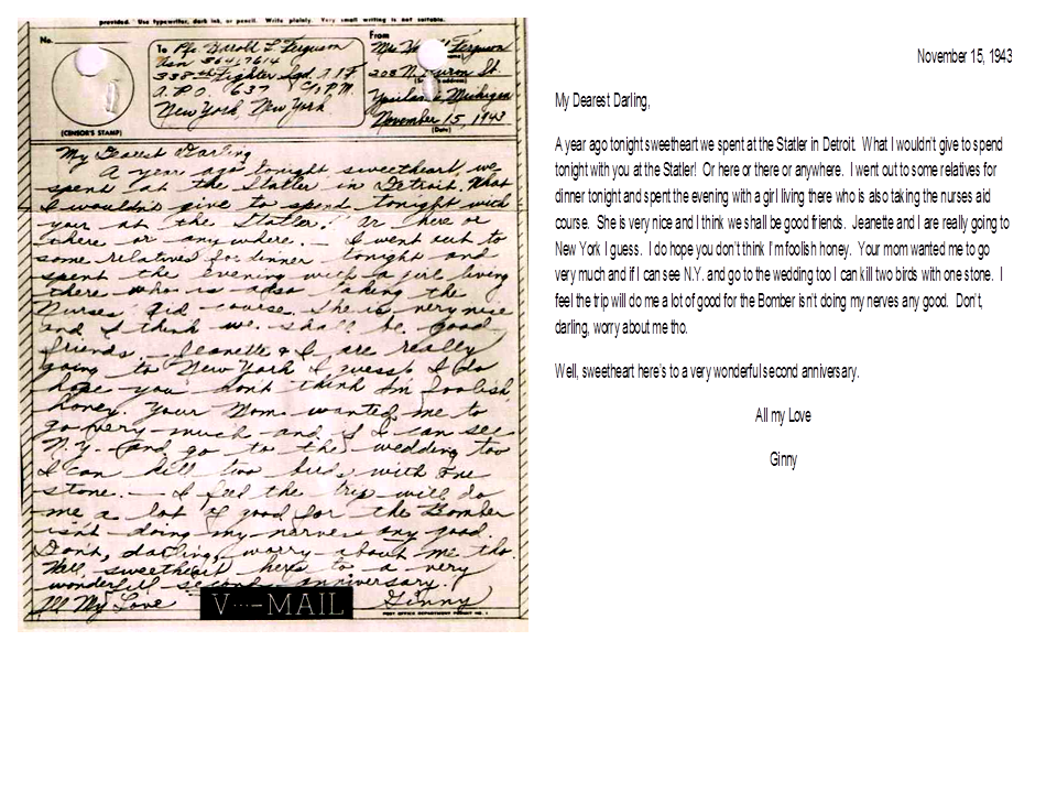 November 15, 1943, Geneva to Harold