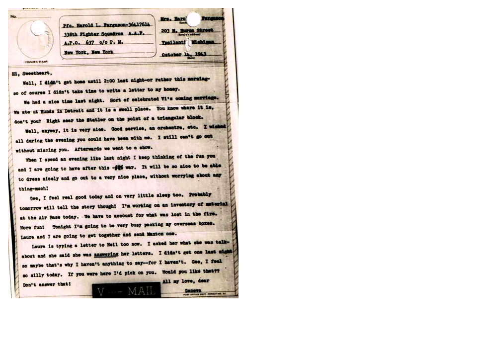 October 14, 1943, Geneva to Harold