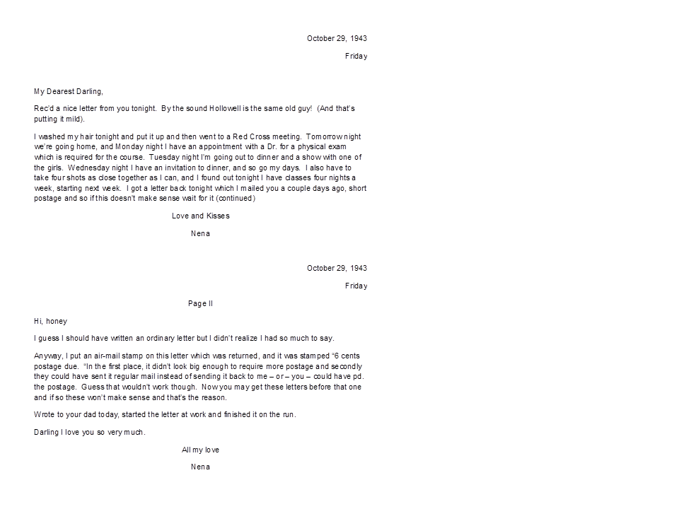 October 29, 1943, Geneva to Harold