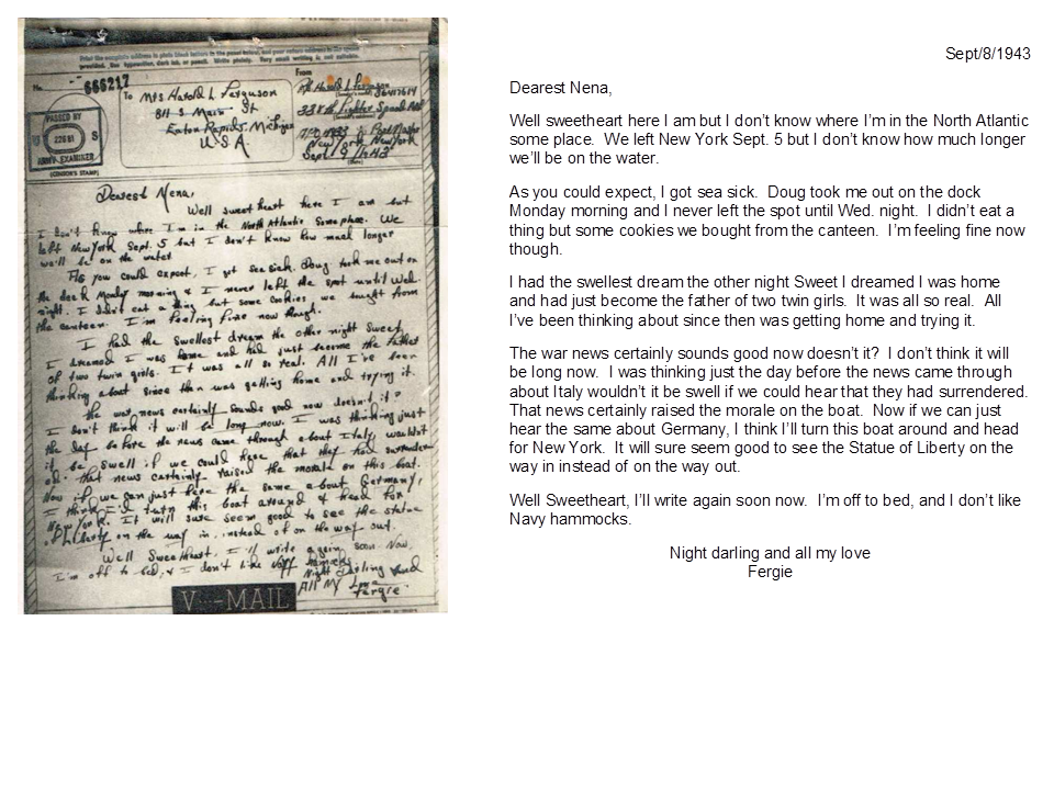 September 8, 1943, Harold to Geneva