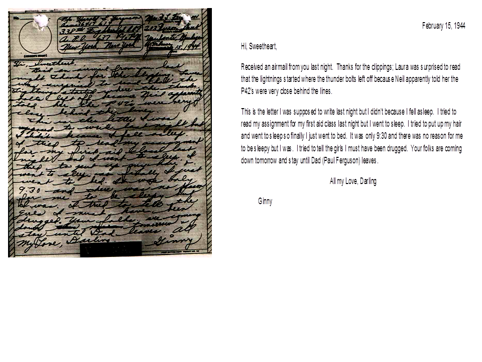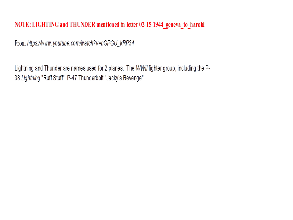 February 15, 1944, Geneva to Harold