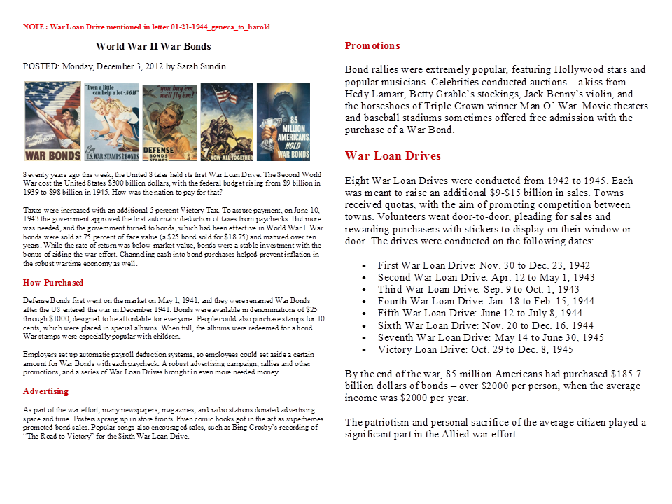 January 21, 1944, Geneva to Harold