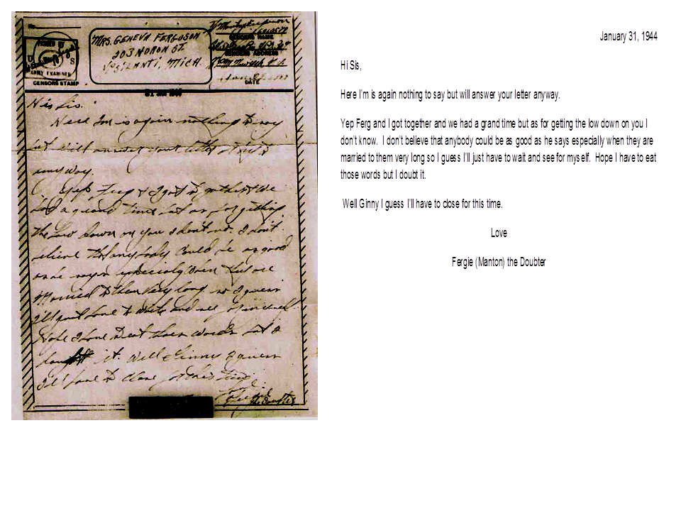 January 31, 1944, Manton to Geneva